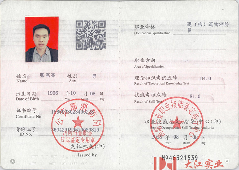 消防設(shè)施操作員張亮亮